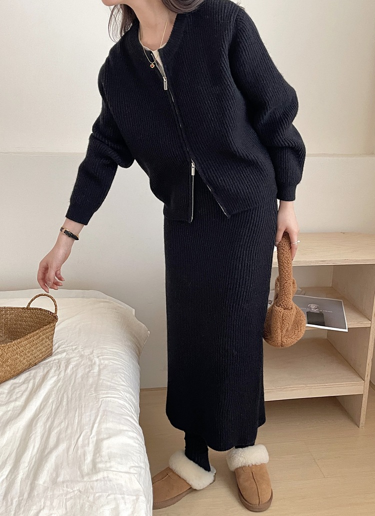 Be the first to review “Double zipper sweater skirt two -piece set of women casual loose autumn and winter knitted cardigan skirt suits” Cancel reply