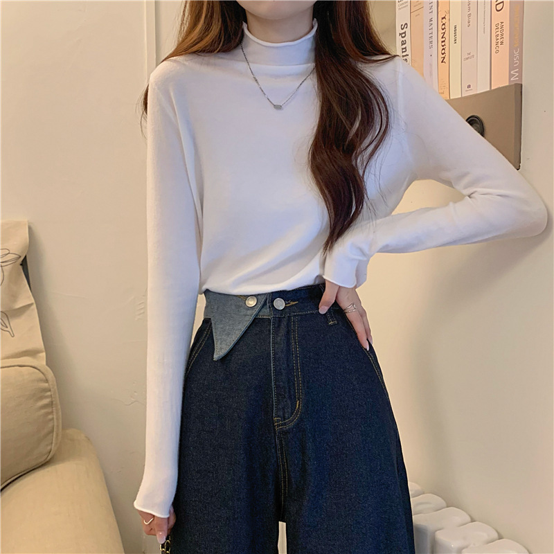 Soft glutinous half -high neck sweater inside the bottom shirt in autumn and winter versatile thin sloping long -sleeved sweater top