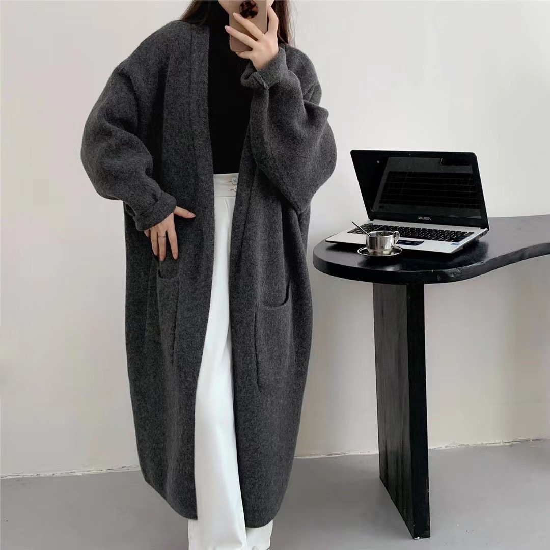 Knit sweater, lady laziness in autumn and winter laziness, baptize medium -long over -knee loose coat jacket