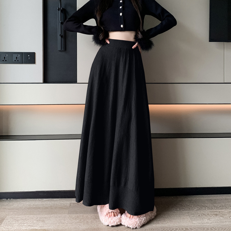 Knitted half -bodies long skirt female autumn and winter loose and large swing thick skirt high waist, high waist, half body
