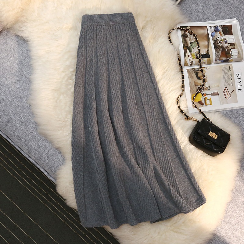Knitted half -bodies long skirt female autumn and winter loose and large swing thick skirt high waist, high waist, half body