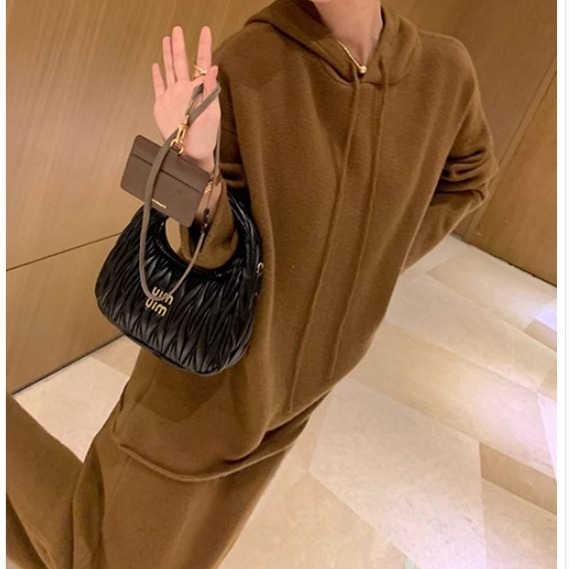 New Year's Eve fashion trendy knitted temperament thin casual sweater set women hooded two -piece suit