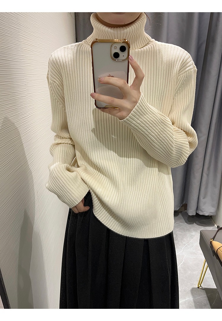 Autumn and winter thin half -high -necked roll -edge temperament pits with sweaters with sweater women port winds warm and light skin knitting and bottoming
