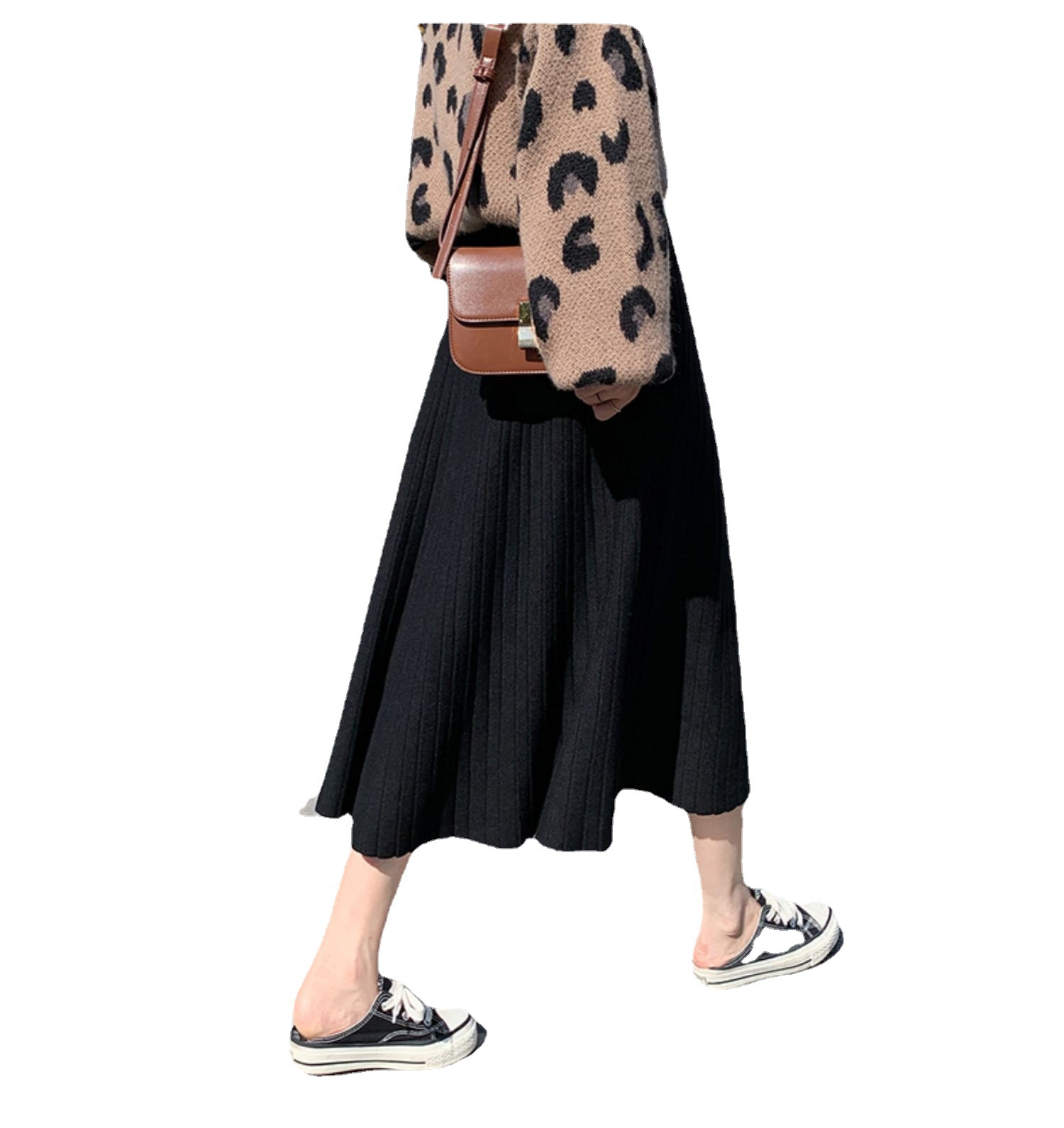 With a sweater, long knitted skirts, women in autumn and winter high waist, vertical sense of temperament, large pleated umbrella skirt